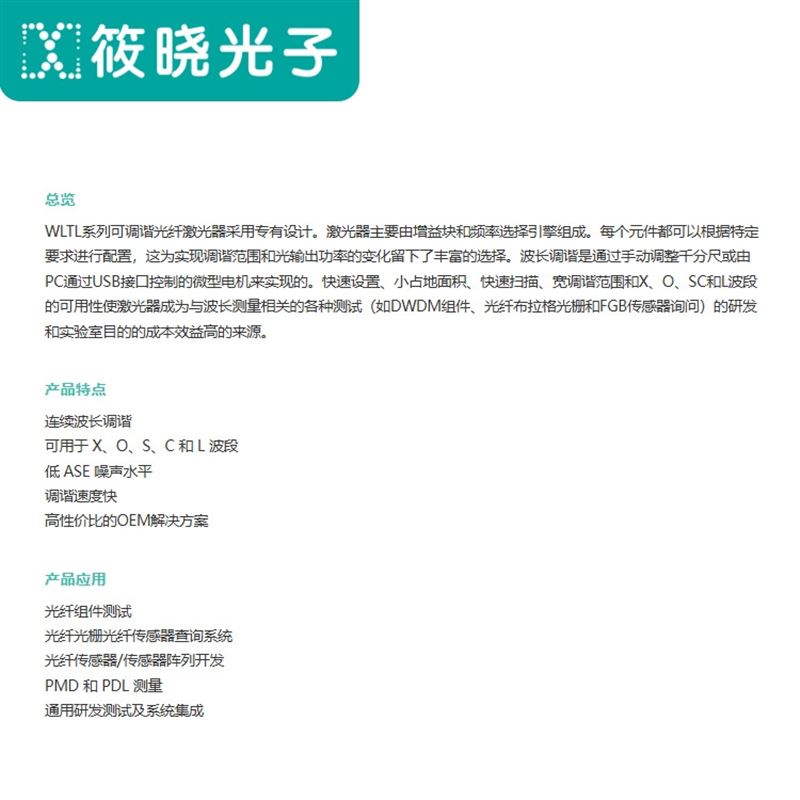 WLTL系列可調(diào)諧光纖激光器建立在專有設(shè)計(jì)之上。激光器主要由增益模塊和頻率選擇引擎組成。