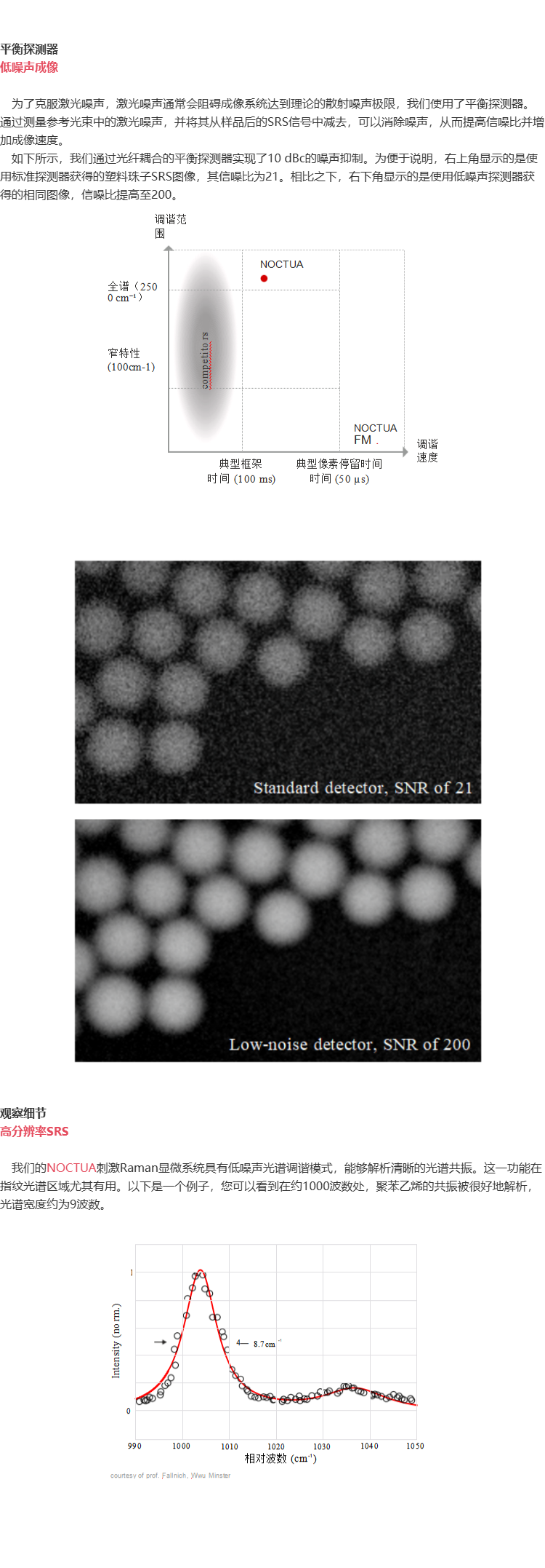 我們的NOCTUA受激拉曼系統(tǒng)無需熒光標(biāo)記即可對活細(xì)胞進(jìn)行高度特異性成像。圖像對比度通過激發(fā)樣本中的固有分子鍵產(chǎn)生,為脂質(zhì)代謝或藥代動(dòng)力學(xué)等細(xì)胞過程打開了新的窗口。實(shí)時(shí)或長期觀察細(xì)胞動(dòng)態(tài),不受光漂白或標(biāo)記干擾。圖像顯示在 2850 cm -1和 2950 cm -1處獲取的 MCF7 細(xì)胞 ,以突出顯示細(xì)胞核和細(xì)胞質(zhì)。